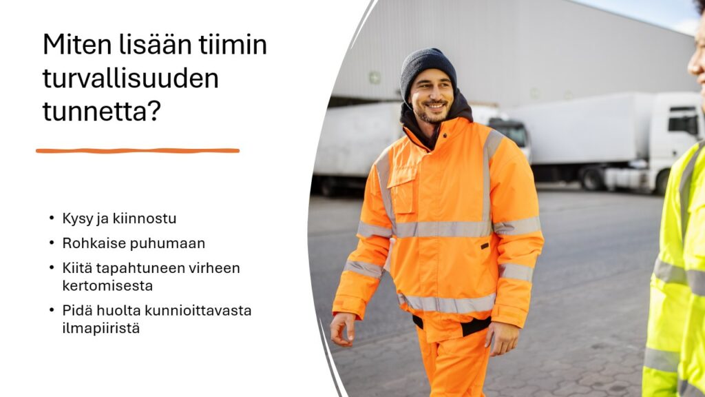 1.1 Keskusteleva johtaminen ja turvallisuus tiimin menestystekijänä