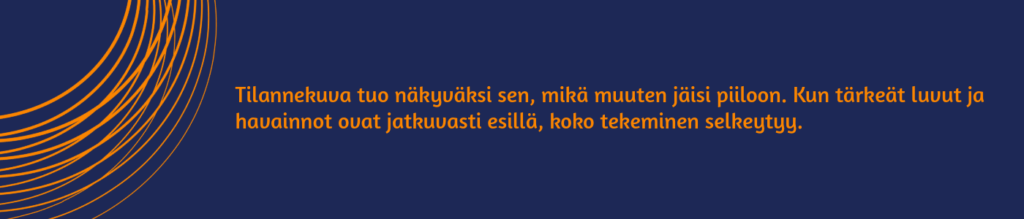 • Kerää tilannekuvaan tärkeät tiedot ja näytä ne selkeästi. Seuraa tilannekuvaa säännöllisesti.