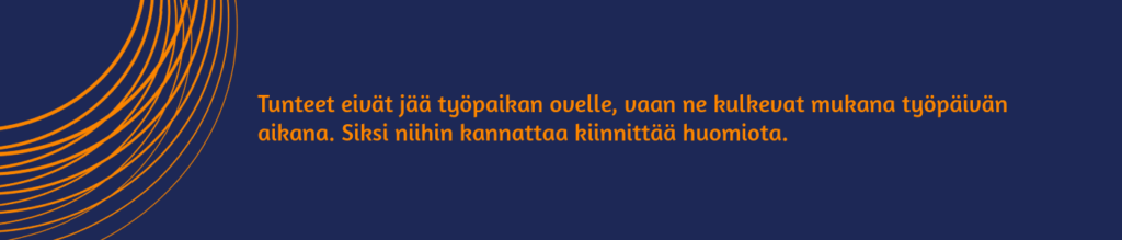 Tunteet vaikuttavat työpaikan ilmapiiriin ja työn sujumiseen. Kun työntekijä tuntee itsensä arvostetuksi ja kuulluksi, hän viihtyy paremmin ja tekee työnsä tehokkaammin. Ilo ja innostus edistävät työskentelyä, kun taas stressi ja pettymys voivat hankaloittaa sitä. Siksi on tärkeää tunnistaa tunteet ja puhua niistä avoimesti.