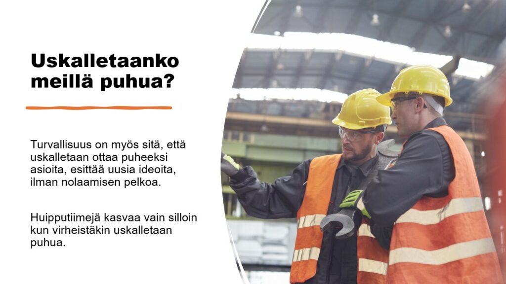 Henkinen turvallisuus puolestaan luo edellytyksiä avoimelle keskustelulle ja luottamukselle työyhteisössä. Se tarkoittaa sitä, että työntekijöillä on mahdollisuus ilmaista mielipiteitään ja huoliaan ilman pelkoa arvostelusta. Turvallinen työilmapiiri, jossa jokaisen mielipide on arvostettu, tukee tuottavuutta ja yhteisöllisyyttä, ja se on keskeinen osa työhyvinvointia. Keskusteleva johtaminen, jossa esihenkilö ja työntekijät käyvät avointa vuoropuhelua, vahvistaa tätä ilmapiiriä.