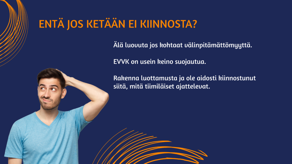 Kun työporukassa on hyvä henki, työkin sujuu paremmin. Tässä osiossa opimme, miten jokainen voi omalla toiminnallaan luoda työpaikalle ilmapiiriä, jossa uskaltaa puhua ja kehittää asioita. Katso nyt video, joka johdattaa sinut teemaan.